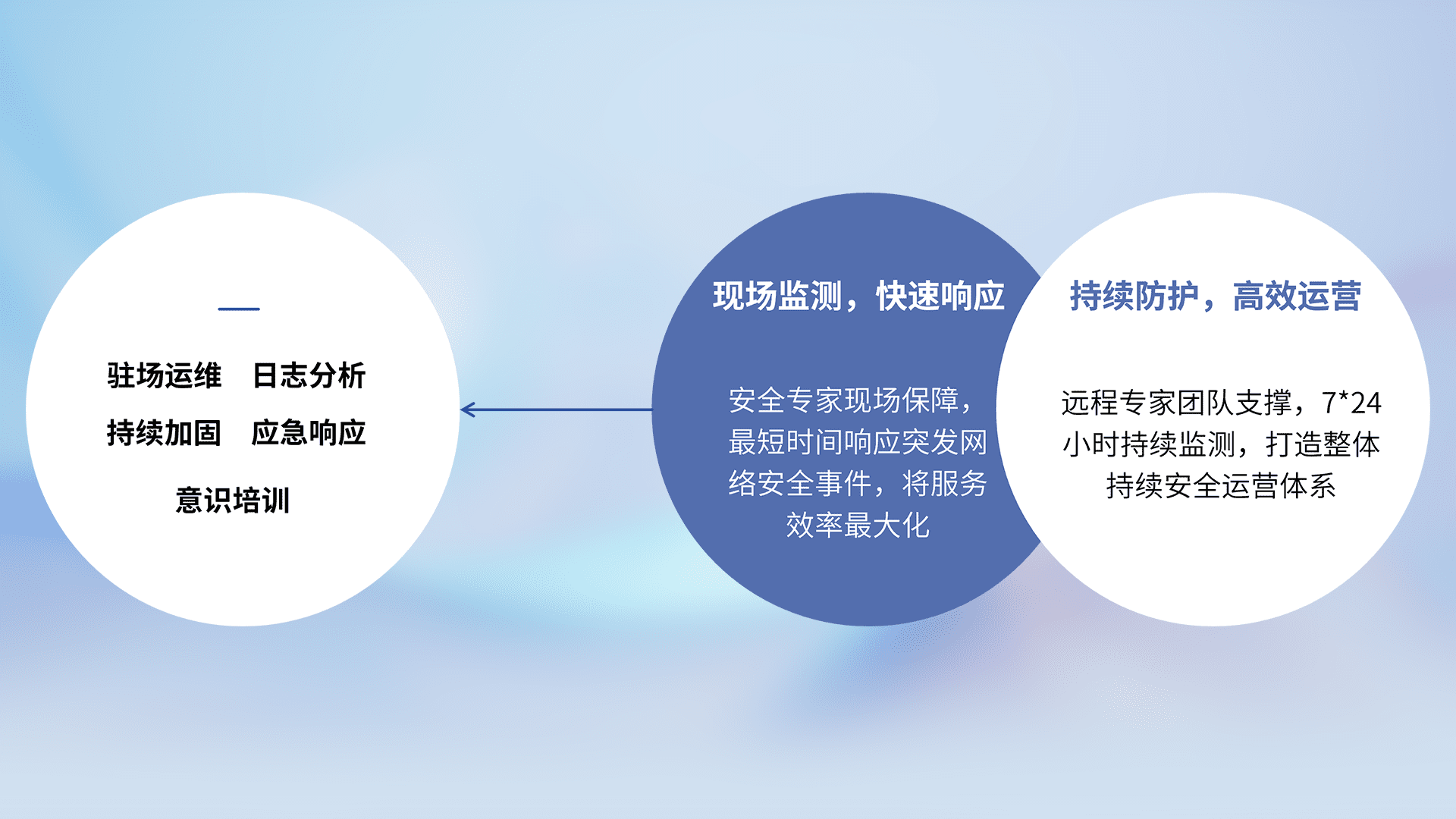 7X24小时持续监测安全事件,保持安全策略有效性,降低资产脆弱性风险,,,,精准拦截黑客攻击,,,减少被黑客利用的机会,,,,第一时间遏制,,,,降低损失。。